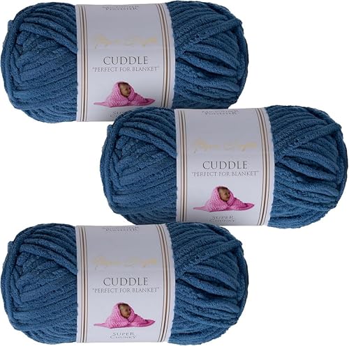 Utopia Crafts Cuddle Super Chunky Chenille Yarn Saxe Blue, 100g 60m Ball, Fluffy, Soft & Easy to Use, Perfect for Crochet & Knitting, Machine Washable, Beginner-Friendly Wool Alternative - Pack of 3