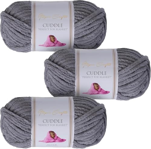 Utopia Crafts Cuddle Super Chunky Chenille Yarn Medium Grey, 100g 60m Ball, Fluffy, Soft & Easy to Use, Perfect for Crochet & Knitting, Machine Washable, Beginner-Friendly Wool Alternative - Pack of 3