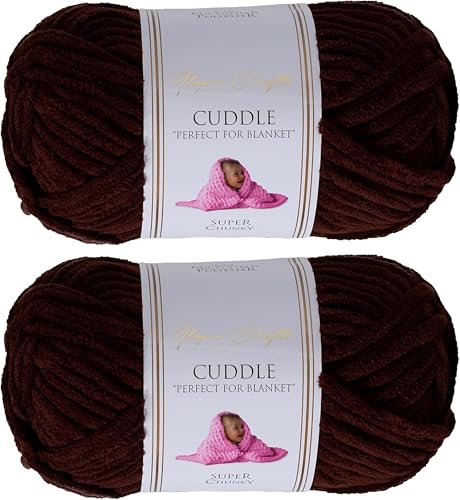 Utopia Crafts Cuddle Super Chunky Chenille Yarn Brown, 100g 60m Ball, Fluffy, Soft & Easy to Use, Perfect for Crochet & Knitting, Machine Washable, Beginner-Friendly Wool Alternative - Pack of 2