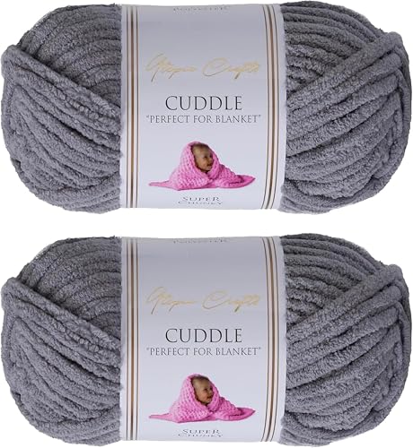 Utopia Crafts Cuddle Super Chunky Chenille Yarn Medium Grey, 100g 60m Ball, Fluffy, Soft & Easy to Use, Perfect for Crochet & Knitting, Machine Washable, Beginner-Friendly Wool Alternative - Pack of 2