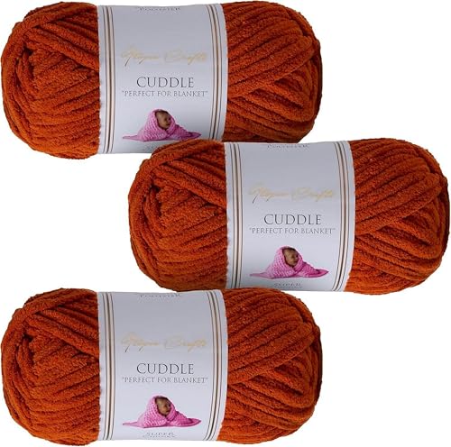Utopia Crafts Cuddle Super Chunky Chenille Yarn Pumpkin Orange 100g 60m Ball, Fluffy, Soft & Easy to Use, Ideal for Crochet & Knitting, Machine Washable, Beginner-Friendly Wool Alternative - Pack of 3