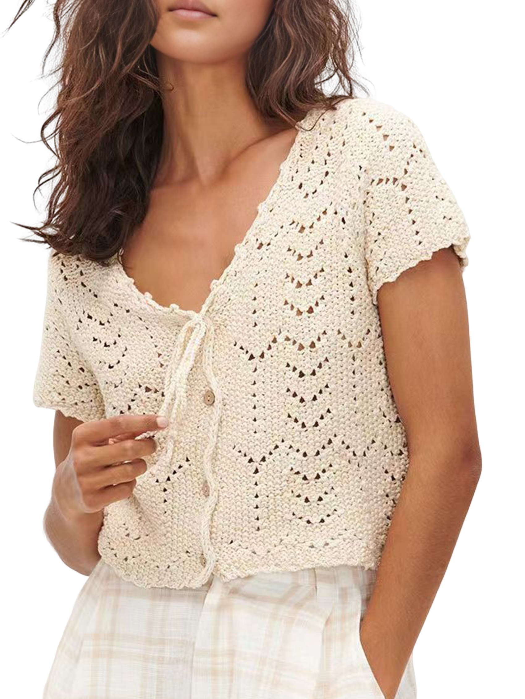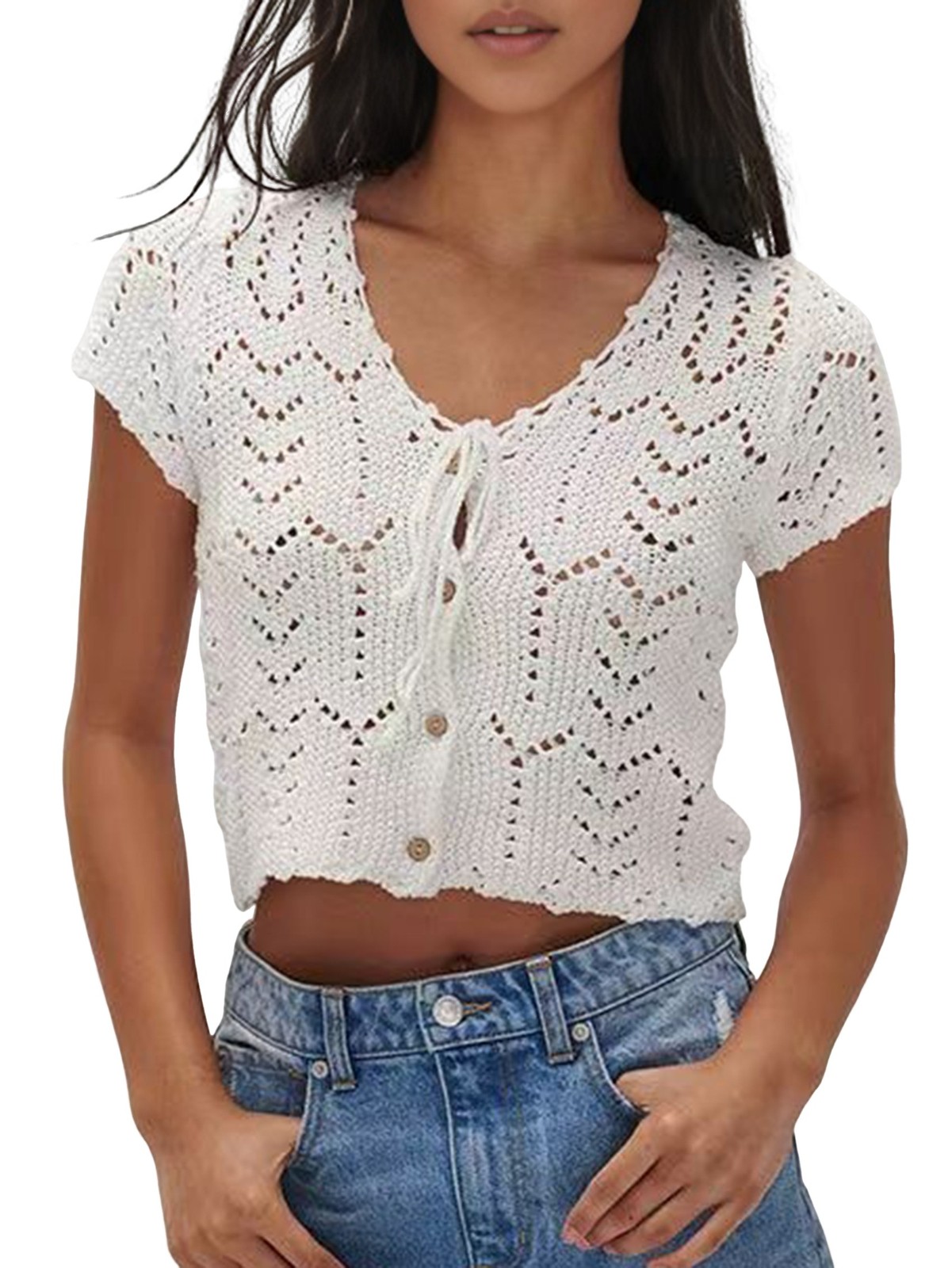 Women'S Summer Short Sleeve Crochet Shrug Tie Front Open Knit Cropped1658