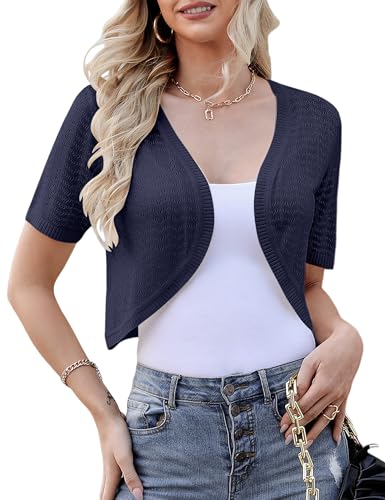 Totatuit Women Bolero Shrugs Summer Short Sleeve Crochet Knitted Cropped Cardigan Ladies Casual Cropped Shrug for Dresses Wedding Evening Navy Blue