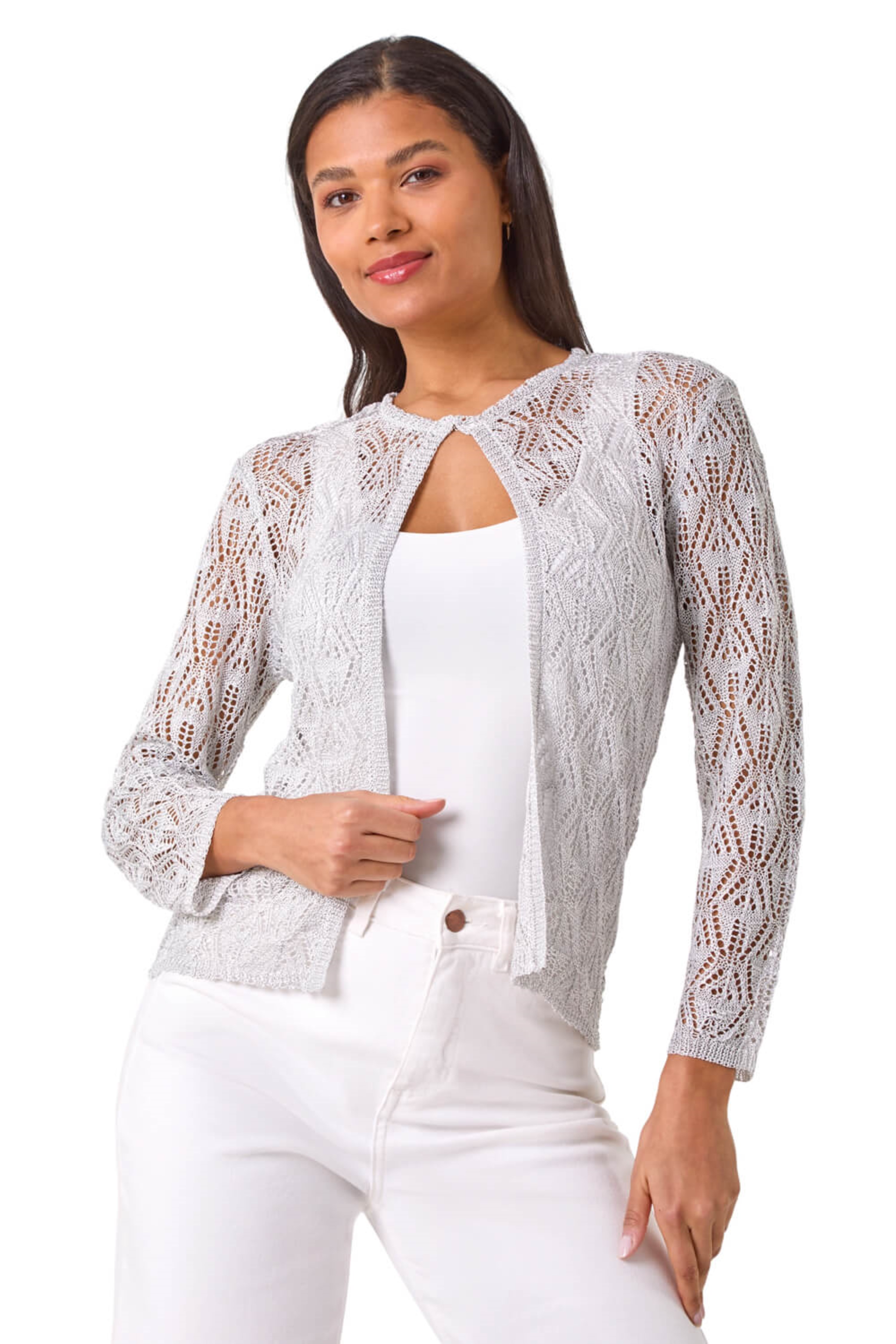 Roman Womens Shimmer Crochet Knit Shrug - Silver - Size 10 UK