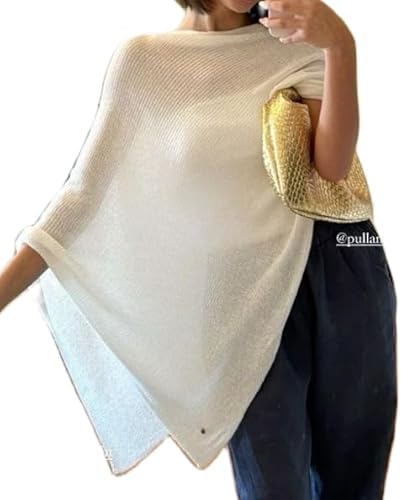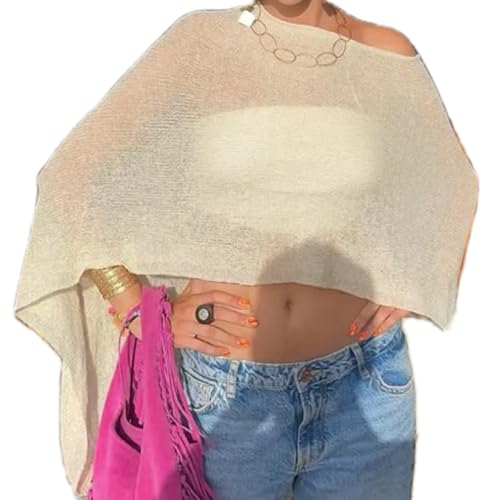 Betrodi Womens Sheer Knit Poncho Top Y2k Crochet Shrug Shawl One Shoulder Mesh Blouse Lightweight Pullover Sweater Shirts(Fashion White,One Size)
