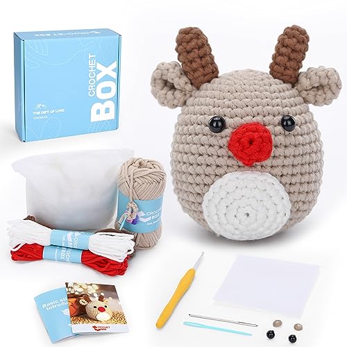 Crochet Kit for Beginners: Reindeer Crochet Kit, Starter Friendly, Include Easy to Use Yarn, Step-by-Step Video, Patterns, Accessories, Birthday Gift for Adults, Teens.