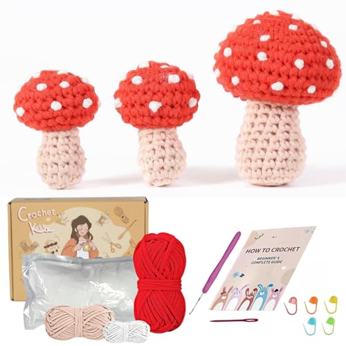 Ktmeor Crochet Kit for Beginners,Crochet Starter Kit for Beginners Adults and Teens with Step-by-Step Video Tutorials,DIY Knitting Supplies with Easy Yarn & 20% Extra Practice Yarn-Mushroom