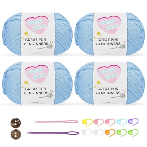 Chunky Crochet Yarn Kit for Beginners Thick Wool Cotton Amigurumi Yarn 4x50g Chunky Wool for Knitting, Ideal Easy Crochet Starter Kit for All Your Crochet Projects (4-Blue)