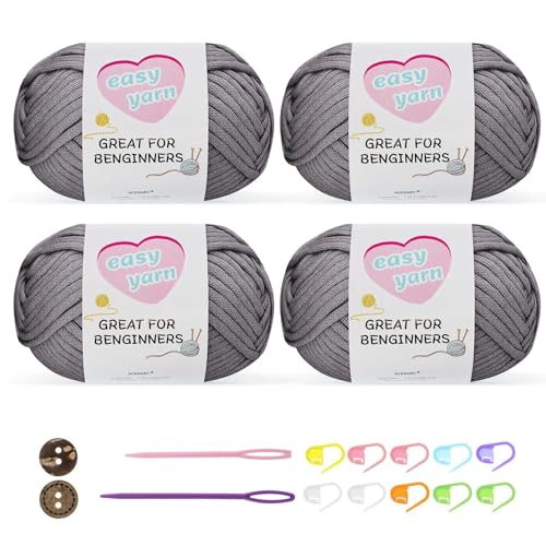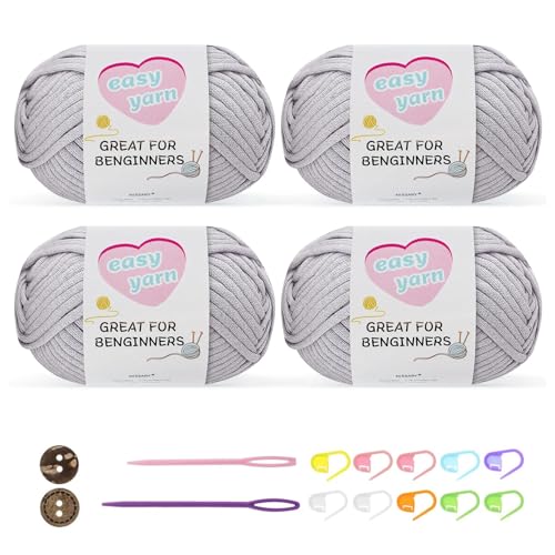 Chunky Crochet Yarn Kit for Beginners Thick Wool Cotton Amigurumi Yarn 4x50g Chunky Wool for Knitting, Ideal Easy Crochet Starter Kit for All Your Crochet Projects (4-Grey)