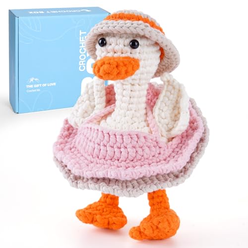 CROCHET BOX Crochet Kits for Beginners Adults, Porch Goose Complete Crochet Starter Set with Soft Yarn, Easy-to-Follow Instructions and Video Tutorials, Birthday Gift for Kids