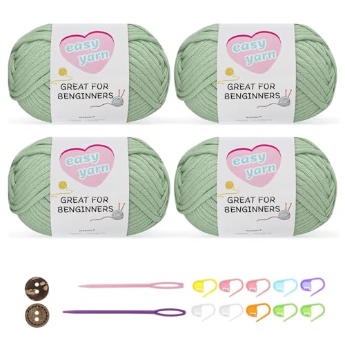 Chunky Crochet Yarn Kit for Beginners Thick Wool Cotton Amigurumi Yarn 4x50g Chunky Wool for Knitting, Ideal Easy Crochet Starter Kit for All Your Crochet Projects (4-Green)