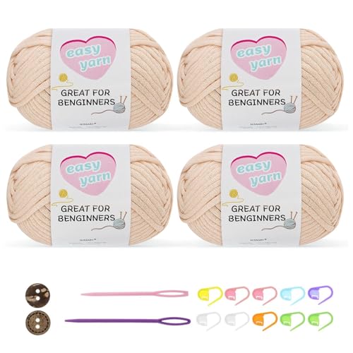 Chunky Crochet Yarn Kit for Beginners Thick Wool Cotton Amigurumi Yarn 4x50g Chunky Wool for Knitting, Ideal Easy Crochet Starter Kit for All Your Crochet Projects (4-Beige)
