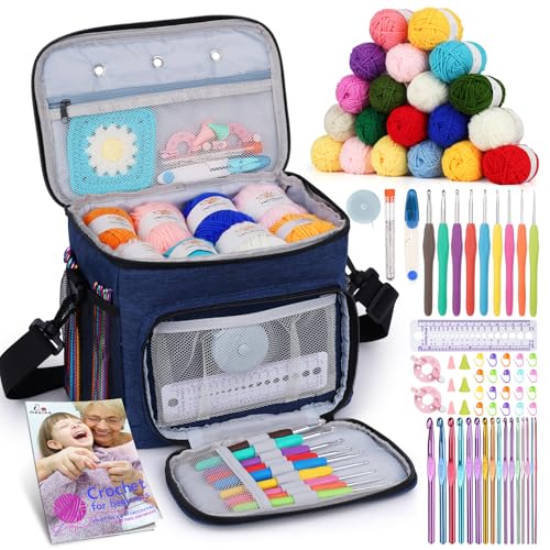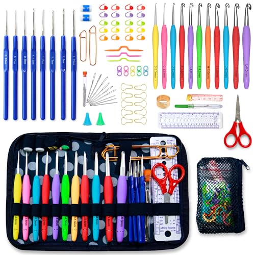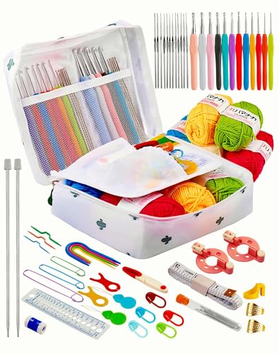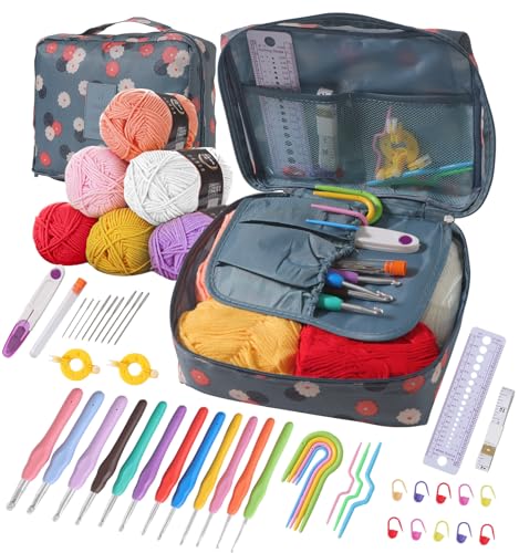 Aeelike Crochet Kit, Crochet Set for Beginners Adults, Crochet Starter Kit with Wool, Ergonomic Metal Crochet Hooks Needles Set 0.6-6.0mm, Accessories and Storage Case, Complete Crochet Kits for Kids