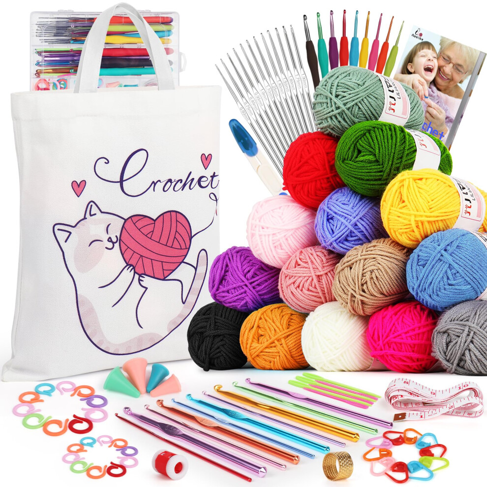 iuqiepo Crochet Kit, Crochet Kits for Beginners Adults, 5 Colors of Yarn, Beginners Crochet Kit, 9 Sizes of Metal Crochet Hooks (2.0mm-6.0mm) Crochet Starter Kit