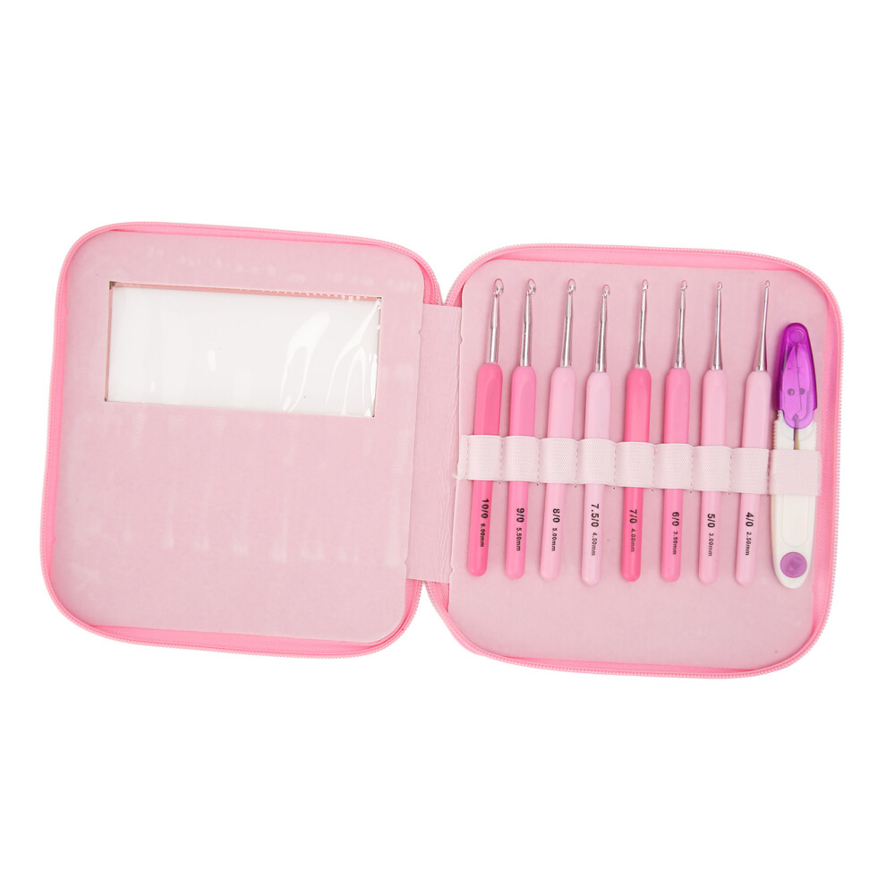Crochet Hooks Set for Beginners Adults Crochet Kits Knitting Kit Ergonomic Metal Crochet Hooks 0.6mm-8mm Knitting Accessories Tools Crochet Wool Yarn Storage Case Needles Crochet Starter Kit-Pink