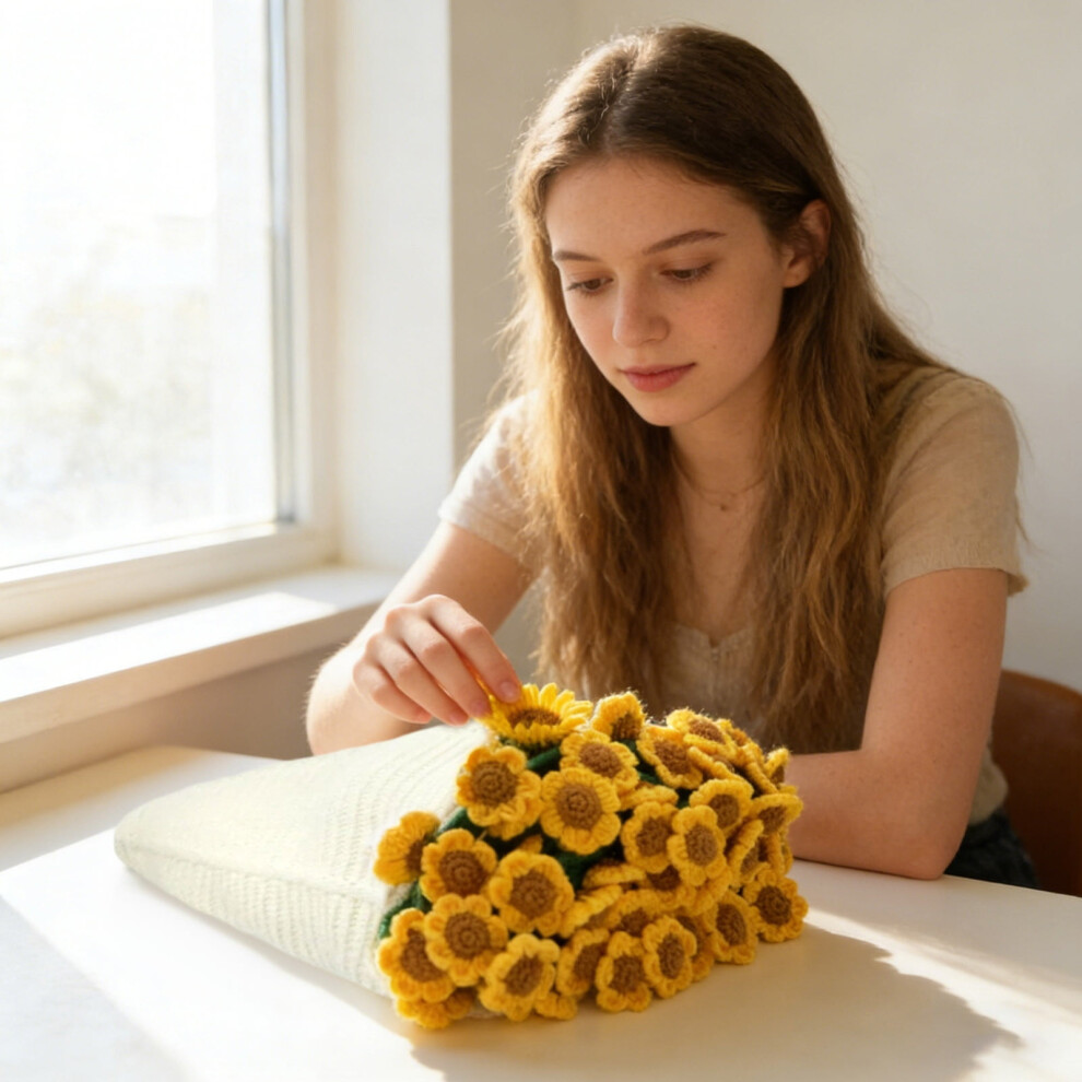 Crochet Starter Kit for Beginners â Sunflower Bouquet & Blanket Set, Valentine's Day Gift, Artificial Knitted Flowers (39.37")