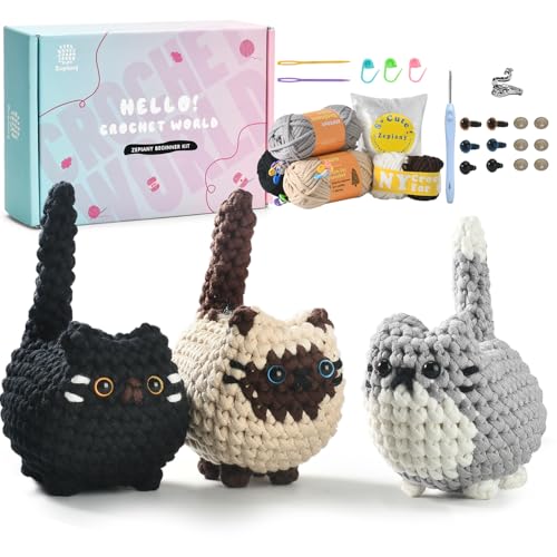 Crochet Kit for Beginners,Amigurumi Crochet Animal Kit,Crochet Starter Kit Step-by-Step Video Tutorials,Kids Crochet Starter Kit,Crocheting Kit-3 Cute Cats