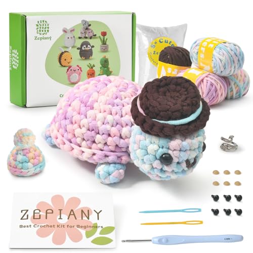 Beginners Crochet Kit, Crochet Kit for Animal Coloured Turtle, Complete Colourful Turtle Crochet Starter Kit with Step-by-Step Video Tutorials, Amigurumi Crochet Animal Kit
