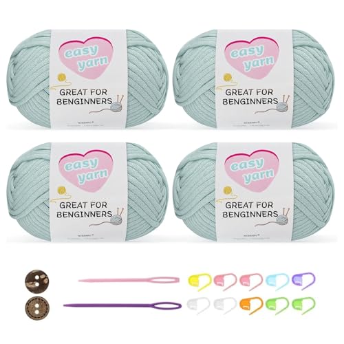Chunky Crochet Yarn Kit for Beginners Thick Wool Cotton Amigurumi Yarn 4x50g Chunky Wool for Knitting, Ideal Easy Crochet Starter Kit for All Your Crochet Projects (4-Light Green)