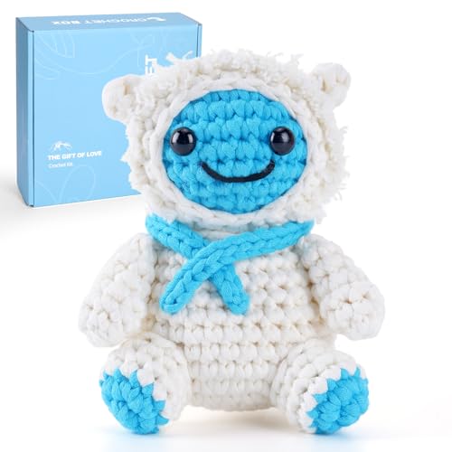 CROCHET BOX Crochet Kits for Beginners Adults, Snowman Complete Crochet Starter Set with Soft Yarn, Easy-to-Follow Instructions and Video Tutorials, Birthday Gift for Kids