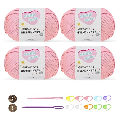 Chunky Crochet Yarn Kit for Beginners Thick Wool Cotton Amigurumi Yarn 4x50g Chunky Wool for Knitting, Ideal Easy Crochet Starter Kit for All Your Crochet Projects (4-Pink)