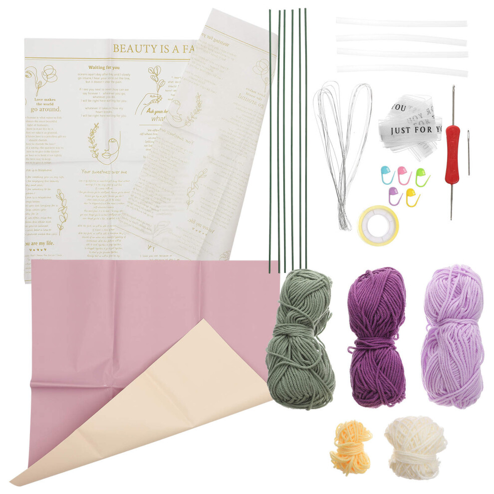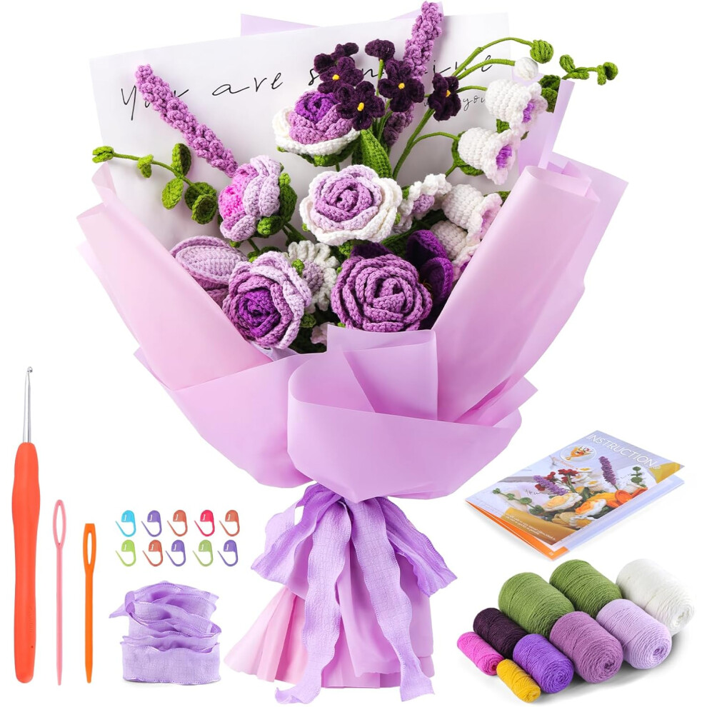 Rose Starter Crochet Set, Hand Crochet Beginner Kit with Comprehensive Learning Tools, Beginner Crochet Practice Kit for Crafting Beautiful Bouquets a