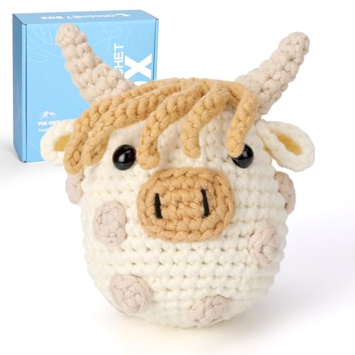 CROCHET BOX Crochet Kits for Beginners Adults, Highland Cow Complete Crochet Starter Set with Soft Yarn, Easy-to-Follow Instructions and Video Tutorials, Birthday Gift for Kids