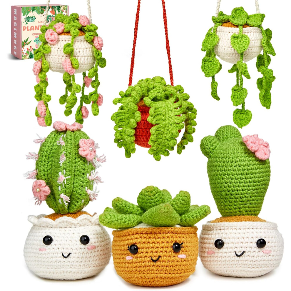 Amigurumi Crochet Succulent Set for Beginners, Crochet Starter Kit, Bunny Plants, Knitting Kit, Gifts for Women, with StepbyStep Video, 6 Pieces