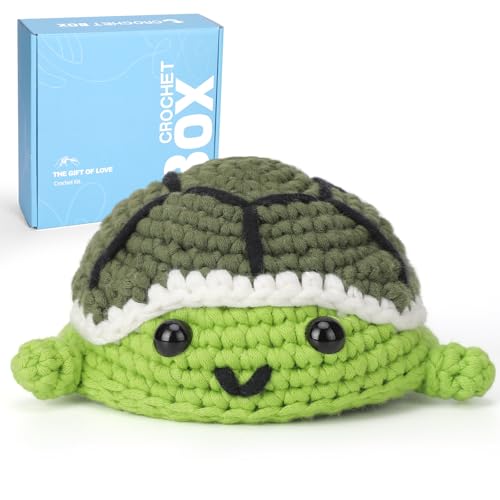 CROCHET BOX Crochet Kits for Beginners Adults, Turtle Complete Crochet Starter Set with Soft Yarn, Easy-to-Follow Instructions and Video Tutorials, Birthday Gift for Kids