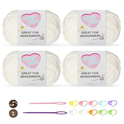 Chunky Crochet Yarn Kit for Beginners Thick Wool Cotton Amigurumi Yarn 4x50g Chunky Wool for Knitting, Ideal Easy Crochet Starter Kit for All Your Crochet Projects (4-White)