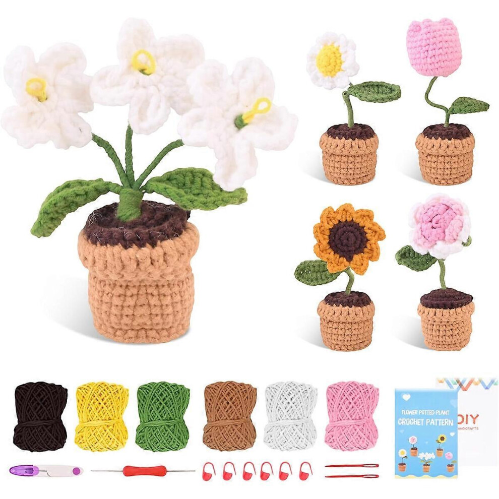 Karsspor Crochet Kit for Beginners, 4 PCS Succulents Crochet Kit with Step-by-Step Instructions and Video Tutorials, Beginner Crochet Kit, Complete Crochet Starter Kit(Patent Product)