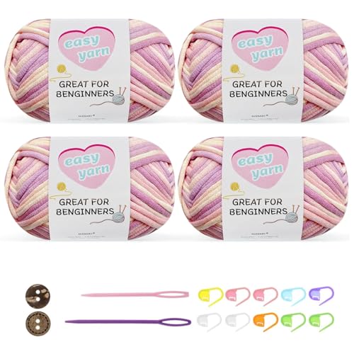 Chunky Crochet Yarn Kit for Beginners Thick Wool Cotton Amigurumi Yarn 4x50g Chunky Wool for Knitting, Ideal Easy Crochet Starter Kit for All Your Crochet Projects (4-mixpink)