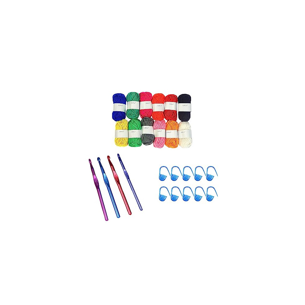 26 Pieces Crochet Set, 12 Rolls of 13g Colored Yarn with Crochet and Stitch Markers, Crochet Starter kit, DIY Crafts Accessories, Suitable for