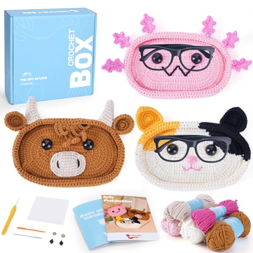 CROCHET BOX Crochet Kits for Beginners Adults, Glasses Holder Eyeglass Complete Crochet Starter Set with Soft Yarn, Easy-to-Follow Instructions and Video Tutorials, Birthday Gift for Kids