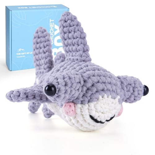 CROCHET BOX Crochet Kits for Beginners Adults, Hammerhead Shark Complete Crochet Starter Set with Soft Yarn, Easy-to-Follow Instructions and Video Tutorials, Birthday Gift for Kids