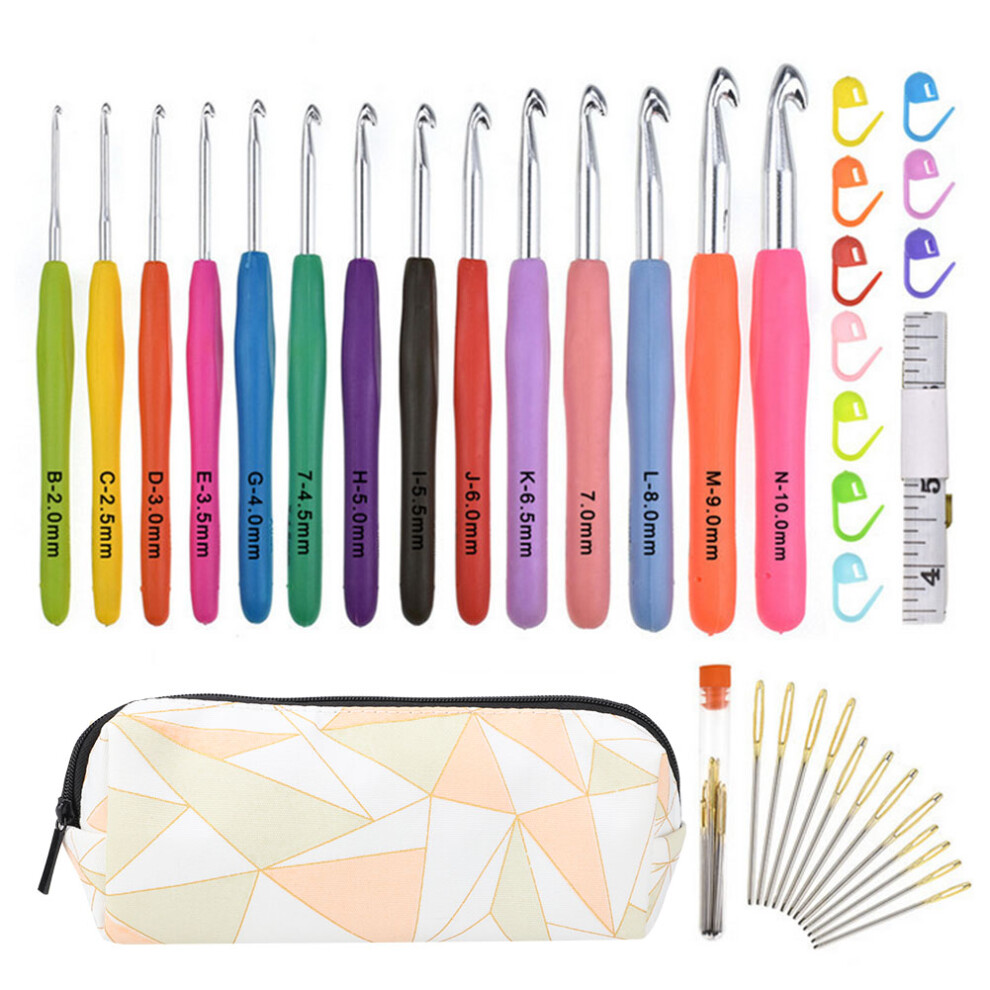 High Quality Aluminum Hooks Smooth Crochet Hooks Ergonomic Crochet Hooks Set Double-Sided Size Marked Crochet Gifts Crochet Starter Kit for Arthritic