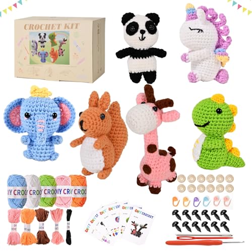Alutaba Crochet Kit for Beginners – 6pcs Amigurumi Animal Crochet Starter Kit with Video Tutorials, Complete Yarn & Hook Set – DIY Craft Gifts for Adults, Teens, Great Birthday Gift for Crochet Lovers