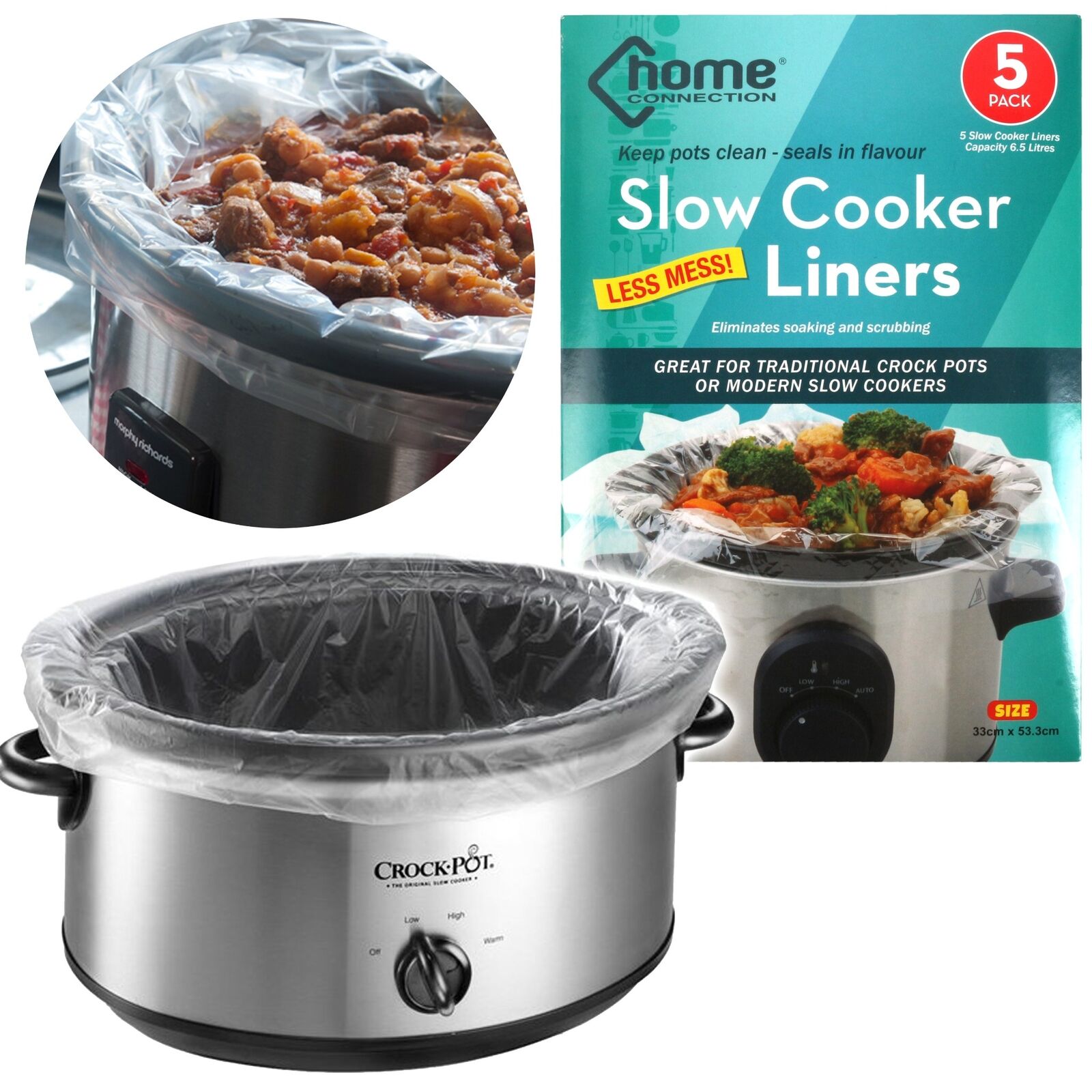 25 x SLOW COOKER LINERS No Washing Up Seal In Juices Pot Cover Round Oval Crock