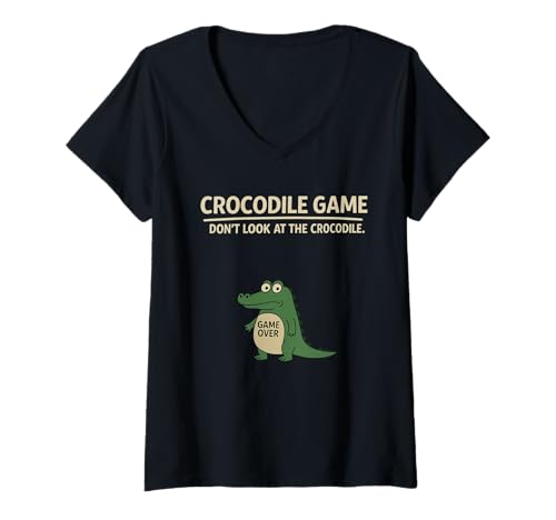 Womens Wild Reptile Humor Crocodile Game Dont Look at The Crocodile V-Neck T-Shirt