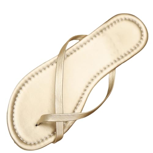 IUYTYSER Ladies Summer Sandals Flip Flops Women'S Style Casual Hundred Clip Toe Beach Shoes Female New French Fashion Outside Wear Flat Bottom One Drag (Gold, 5.5) Womens Flop Crocs Walking For