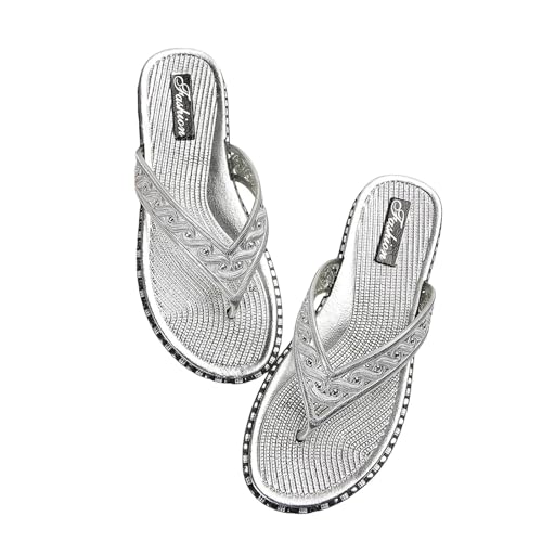 IUYTYSER Ladies Summer Sandals Flip Flops Women Slippers Fashion New Open Toe Comfortable Non Flat (Silver, 5.5) Sliders Walking For Uk Womens Flop Crocs Women'S Gold Black Size 4 Rubber Memory