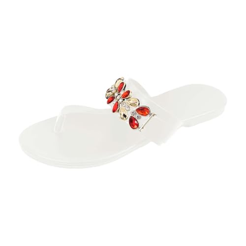 IUYTYSER Flip Flops Women Arch Support Ladies Slippers Clip Toe Flat Bottom Fashion Butterfly Beach Sandals Casual Furry For Closed (White, 7) Womens Sliders Foot Thongs Flop Crocs Flip-Flops