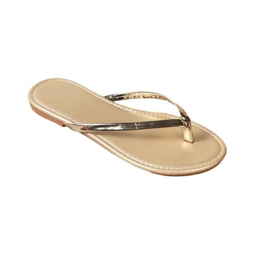 IUYTYSER Ladies Summer Sandals Flip Flops Women'S Beach Thong Slippers Hollow Casual Clip Toe Flat Shoes Cowboys For Women (Gold, 5) Foot Thongs Womens Flop Crocs Wide Flip-Flops Arch Support Uk