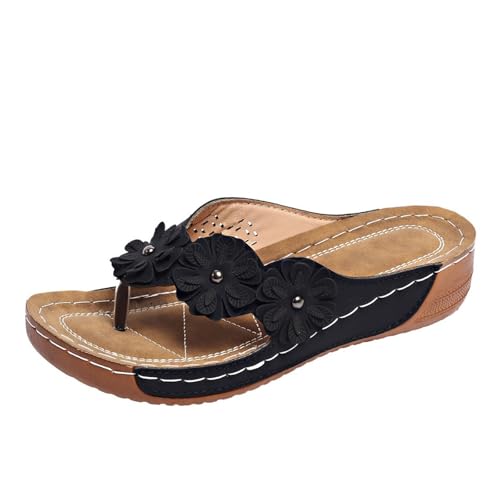 IUYTYSER Women'S Orthotic Cushion Flip Flops Beach Slope Heel Thong Slippers Hollow Casual Clip Toe Bottom Shoes Sandals Slipper Women (Black, 5) Size 6 Womens Flop Crocs Sliders Flip-Flops For