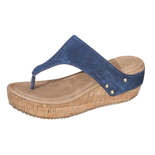 IUYTYSER Arch Support Flip Flops Women'S Beach Slope Heel Slippers Thong Bottom Shoes Sandals Size 12 Womens (Blue, 4) Foot Thongs & Slides Walking For Women Uk Flop Crocs Orthopedic Flip-Flops