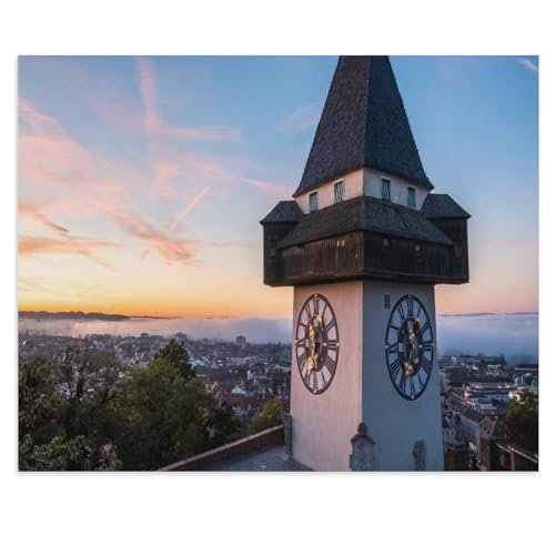 Jigsaw Puzzle 1000 Pieces,The Famous Clock Tower on Schlossberg in Graz, Austria,Paper Adult Toys Decompression Game(50x70cm)-V23