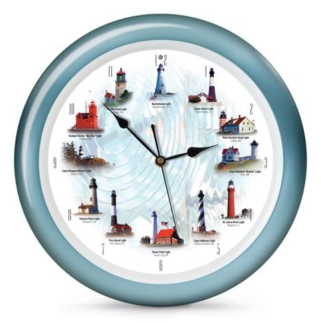 Mark Feldstein & Associates Lighthouse Collection Maritime Nautical and Ocean Sounds Wall Clock, 13", Blue, 12 Sounds on The Hour