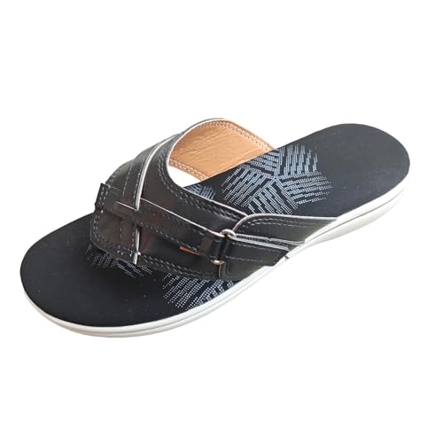 IUYTYSER Flip Flops Women Arch Support Flop Summer New Pattern Fashion Beach Slippers Comfortable Flat Non (Black, 4.5) Womens Crocs Sliders Sandals For Women'S Wedge Wide Orthotic Uk Pool