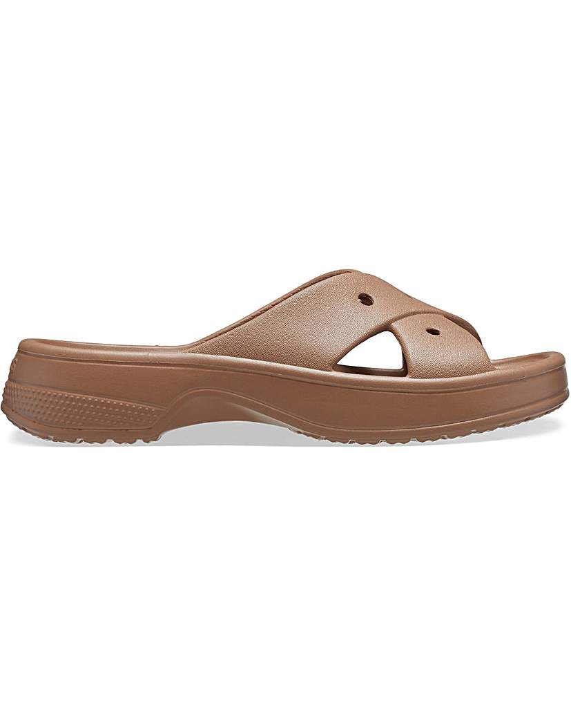 Crocs Classic Cross Strap Thermoplastic WoMens Milk Chocolate Sandals - Brown - Size UK 6