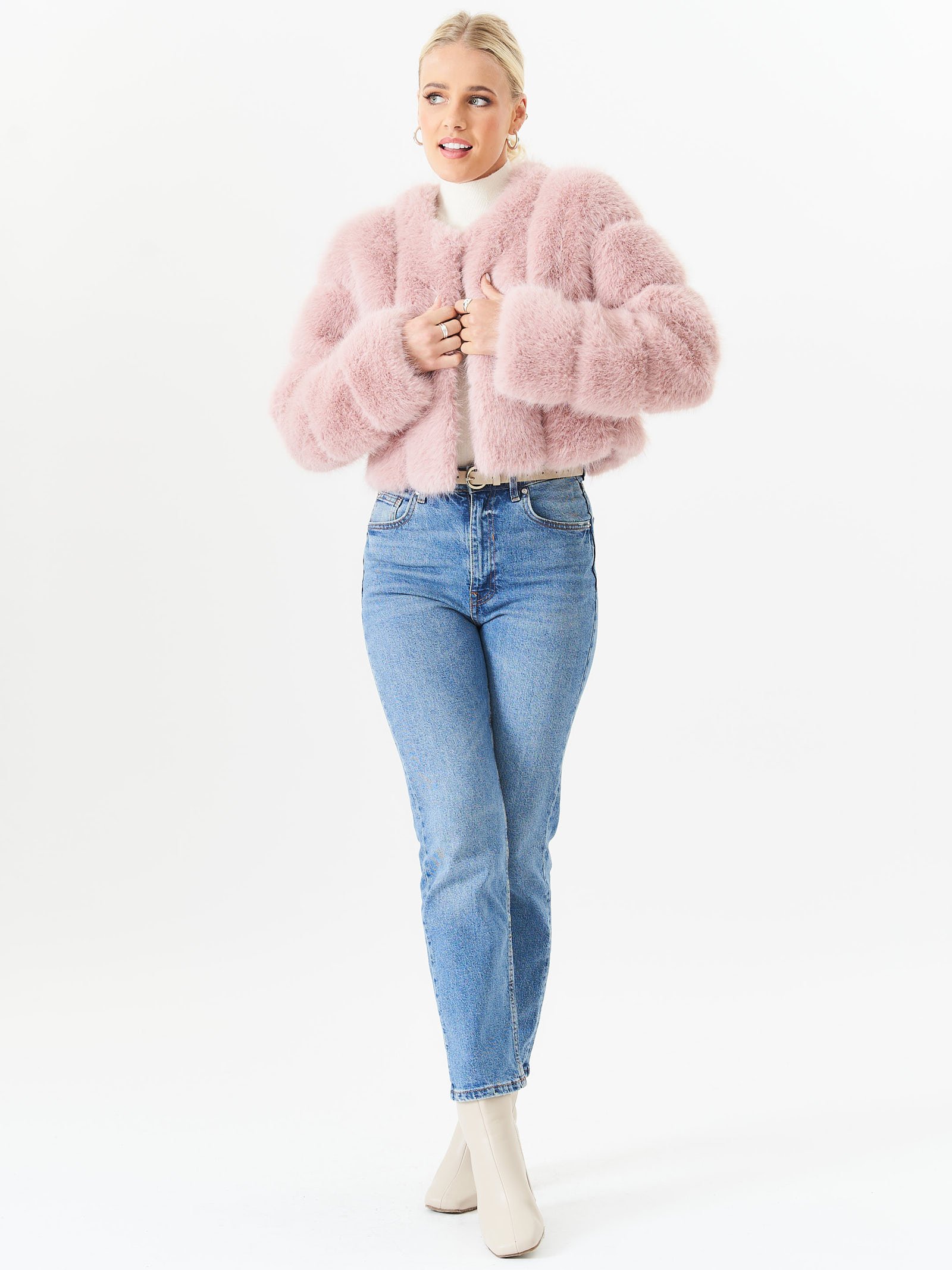 Gini London Womens Panel Faux Fur Crop Jacket - Pink - Size L/XL
